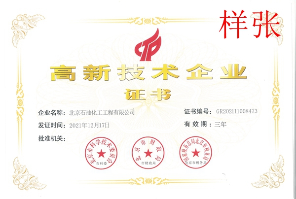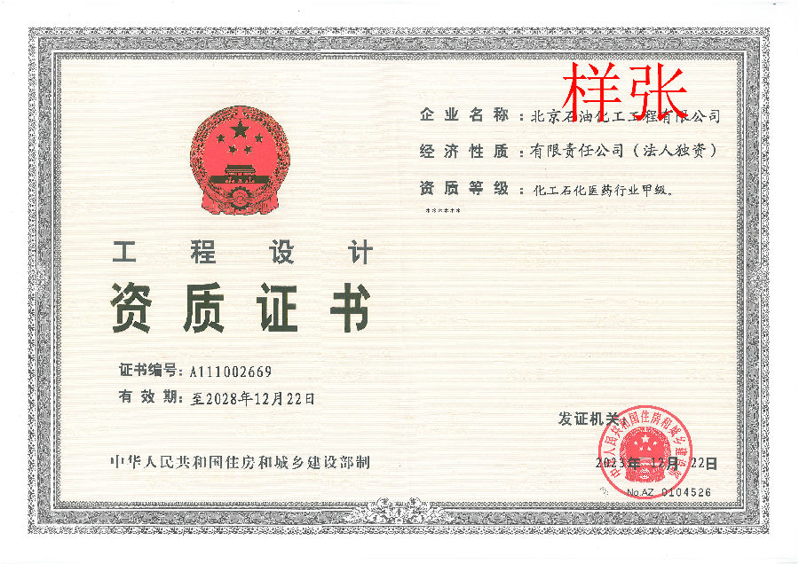 工程設計資質證書(化工石化醫藥行業甲級)