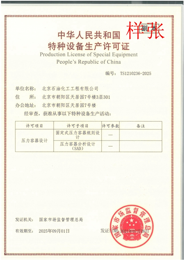 特種設備設計許可證(壓力容器)