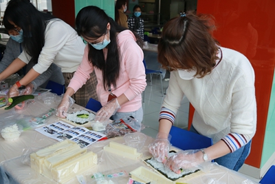 在這個(gè)屬于“女神”的節(jié)日里,工會(huì)組織女職工進(jìn)行了一場愜意又休閑的手工制作活動(dòng)。工作人員將事先準(zhǔn)備好的制作壽司、雪媚娘等食品所需要的原材料在職工食堂擺放整齊,讓大家親自動(dòng)手進(jìn)行制作。制作過程中,大家親密交談,協(xié)同制作,在忙碌的工作之余度過了一段難忘的午后時(shí)光。