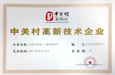 近日,北京石油化工工程有限公司獲得中關村高新企業科技園區管理委員會頒發的《中關村高新技術企業》證書!這是公司又一重要標志性成果。