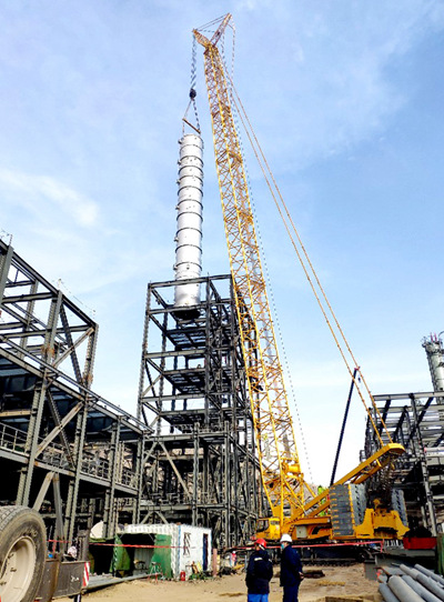 內(nèi)蒙古東景BDO項(xiàng)目丁二醇主裝置置汽提塔吊裝完成