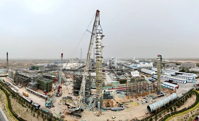 五一國際勞動節(jié)前夕,由北京石油化工工程有限公司EPC總承包的陜西延長石油榆林凱越煤化有限責任公司50萬噸/年甲醇制乙醇項目核心設備——預分離塔第三段順利完成吊裝,標志著該項目首臺分段式吊裝塔器成功封頂,為后續(xù)工程建設奠定了堅實基礎。