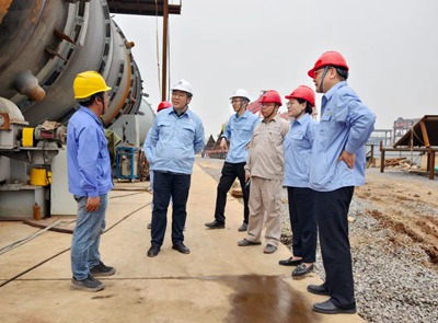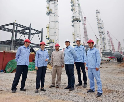 5月17日,北京石油化工工程有限公司黨委副書記、總經理田偉,總經理助理張文立一行蒞臨荊門源晗電解液前驅體乙醇裝置項目進行調研。
