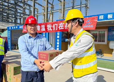 在搶抓工期的同時,項目部始終將安全生產(chǎn)放在首位。截至目前,項目已累計實現(xiàn)90萬安全人工時,全體參建人員嚴格遵守安全操作規(guī)程,以零事故的優(yōu)異成績樹立行業(yè)安全生產(chǎn)新標桿。針對近階段持續(xù)高溫天氣,項目部采取多項措施保障施工人員健康安全,包括發(fā)放防暑降溫飲品、合理調(diào)整作業(yè)時間等,確保高溫季節(jié)施工安全有序進行。