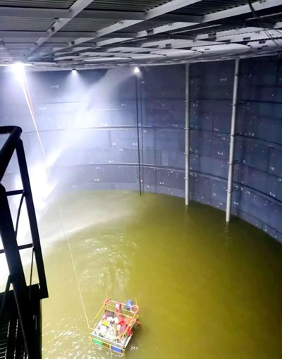 目前,項目1、2號罐開始注水試驗,3、4號罐主體焊接已處于收尾階段,4臺儲罐水壓試驗計劃38天完成。充水期間,作業(yè)人員對16個沉降觀測點進(jìn)行測量,并對罐體進(jìn)行檢查,直至沉降穩(wěn)定。