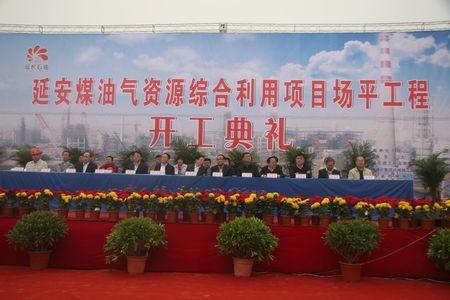 延安能化公司總經(jīng)理王家信在儀式上致辭,集團(tuán)公司副總經(jīng)理馮和平做了重要講話,延安市委常委、常務(wù)副市長薛占海為工程宣布開工令。