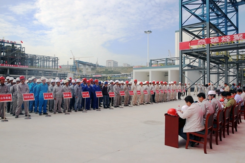 大會(huì)現(xiàn)場(chǎng),公司董事長(zhǎng)在表態(tài)發(fā)言中確立三點(diǎn)目標(biāo),一是入冬前完成高中壓蒸汽管線的吹掃工作和所有機(jī)組單機(jī)試車,加快完成所有具備條件的烘爐、烘襯工作;二是乙丙橡膠裝置完成全部土建和60%安裝工程,其他裝置完成全部的實(shí)物工作量;三是硫回收、PP、PE、甲醇、2PH裝置及公輔設(shè)施年底具備中交條件,其余裝置力爭(zhēng)具備中交條件。